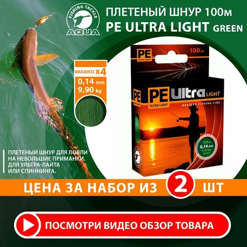 Плетеный шнур для рыбалки AQUA PE Ultra Light Dark Green 100m 0.14mm 9.9kg 2шт