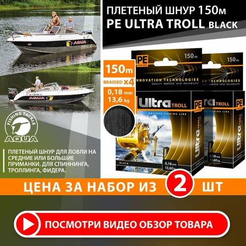 Плетеный шнур для рыбалки AQUA PE ULTRA TROLL черный 150m, 0,18mm, 13,60kg / плетенка 4 нити на троллинг, спиннинг, фидер (набор 2 шт)