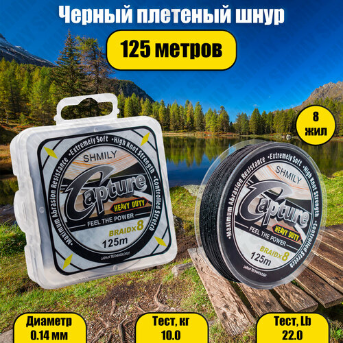 - Плетеный шнур Capture, 8 жил, черный 0.14 мм, 10.0 кг, 22.0 Lb, 125 м - 1 шт