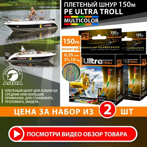Плетеный шнур для рыбалки AQUA PE ULTRA TROLL мультиколор 150m 0.35mm 32.1kg / плетенка 4 нити на троллинг, спиннинг, фидер / (2 шт)