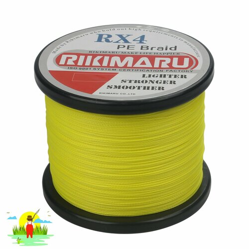 Плетеный шнур RIKIMARU RX4 PEx4 / 0.35мм, 20.5кг, Flou Yellow, 500м, / Леска плетенка для рыбалки