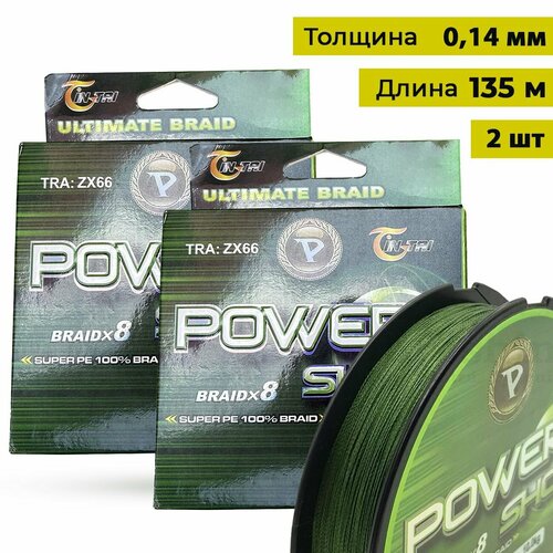 Шнур 8 жильный PE для рыбалки 0.14 мм 20.0 кг 135 м зеленый 2 шт