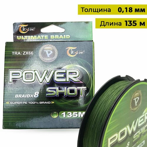 Шнур 8 жильный PE для рыбалки 0.18 мм 29.2 кг 135 м зеленый