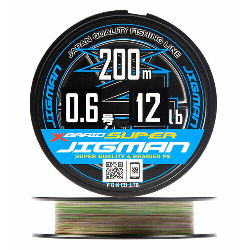 Шнур YGK X-Braid Super Jigman X4 200 м, Multicolor #2.0, 0.235 мм, 30 lb, 13.5 кг.