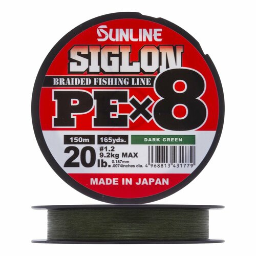 Sunline, Шнур Siglon PE X8, 150м, Dark Green, 1.2, 20lb