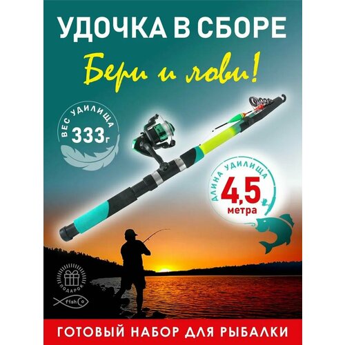 Готовая телескопическая удочка с катушкой 4,5 м Набор для рыбалки