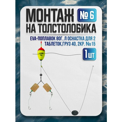 Монтаж на толст.№ 6: EVA-поплавок 80г, Л оснастка для 2-х таблеток, груз 40, 3кр. №15