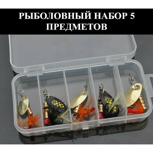 Набор блесен и приманок 5 штук. Рыболовный набор