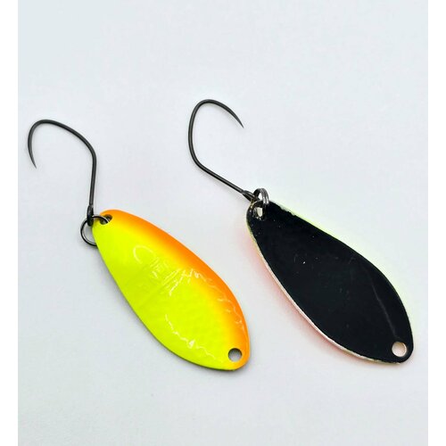 Блесна выполнена в виде колеблющейся приманки, что является одним из самых эффективных способов привлечения форели. Цвет блесны - #IJ37, который является комбинацией желтого, оранжевого и черного цветов.