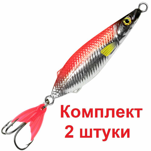 Блесна для рыбалки AQUA нерка 08,0g цвет 03 (серебро, красный металлик), 2 штуки в комплекте