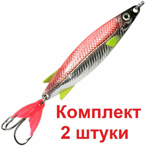 Блесна для рыбалки AQUA тобик 80,0mm, вес - 24,0g цвет 03 (серебро, красный металлик, 2 штуки в комплекте