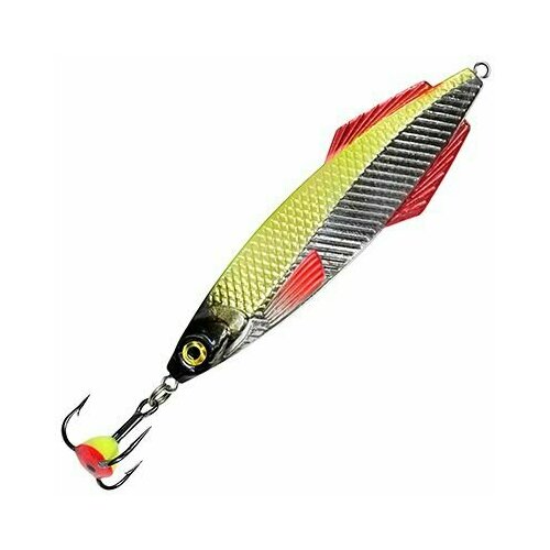 Блесна для рыбалки зимняя AQUA Ятаган 14,0g, цвет 04 (серебро, желтый и красный флюр) 1 штука