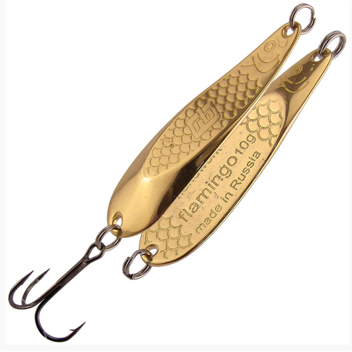 Фламинго имеет несколько вариантов покрытия: медь, латунь, серебро, и комбинацию серебра и золота. Поверхность блесны покрывается водостойким лаком, препятствующим окислению и сохраняющий привлекательный вид блесны.
