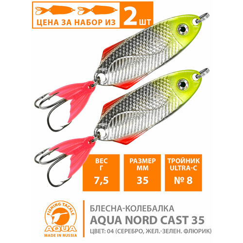 Блесна колебалка AQUA NORD CAST 35mm 7.5g. Рыболовная приманка колеблющаяся для спиннинга, троллинга на щуку, судака, окуня цвет 04 (2 шт)