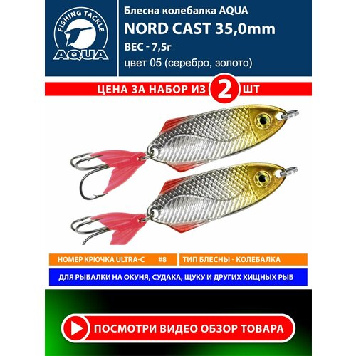 Блесна колебалка AQUA NORD CAST 35mm 7.5g. Рыболовная приманка колеблющаяся для спиннинга, троллинга на щуку, судака, окуня цвет 05 (2 шт)