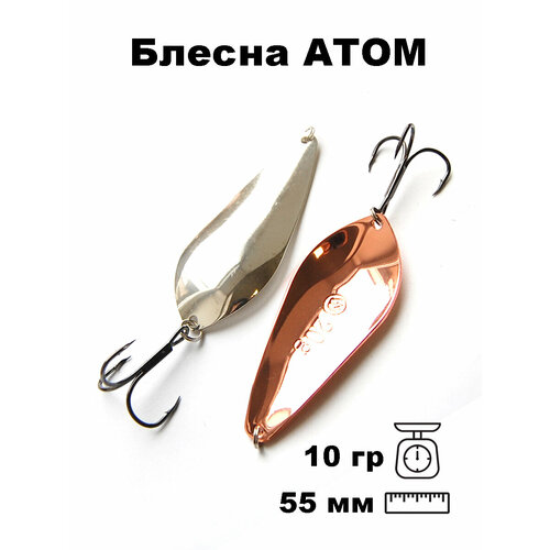 Одна из лучших блесен для ловли щуки. Эту приманку точно можно отнести к классике рыболовных снастей. Блесна работает при разнообразных типах проводки, начиная с равномерной и заканчивая рывковой с большими паузами. Очень хорошо себя проявляет в начале осени. Игра атома размашистая и привлекает рыбу с большого расстояния. Но требует весьма медленной проводки, так как при увелечении скорости может сорваться на вращение. Выполняется в размерах от пятидесяти пяти до семидесяти пяти сантиметров и весом от десяти до двадцати грамм.