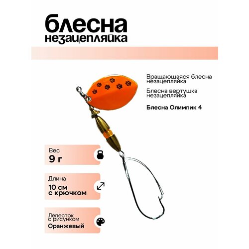 Блесна вертушка Ppofilux Олимпик незацепляйка 9гр оранжевый цвет с рисунком.