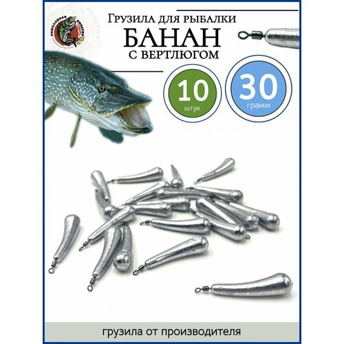 Грузило для рыбалки банан с вертлюгом 30гр-10 штук