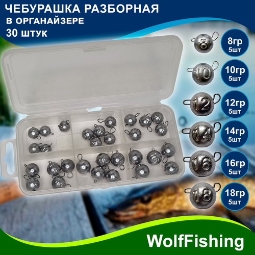 Набор грузов "Чебурашка разборная" в органайзере 8, 10, 12, 14, 16, 18гр по 5шт, всего 30 грузов, джиг