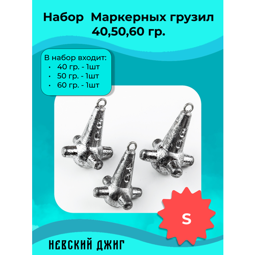 Набор Маркерных грузил для рыбалки 40,50,60 гр. (S) на фидер Невский Джиг