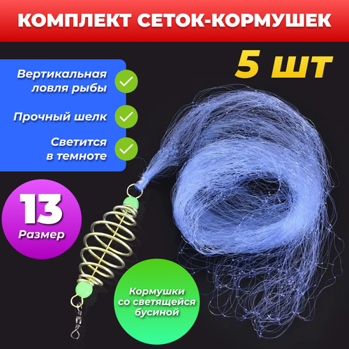 Кормушку можно забрасывать как в ручную, так и с помощью спиннинга предварительно в кормушку-пружину нужно вдавить прикормку. Кормушка с сеткой при попадании В воду создает сетный объем, в котором кормится рыба выпадающим из кормушки кормом. Летом кормушку можно оснастить поплавком и забрасывать с берега, зимой в лунку. Пружинка с сеткой при ловле со льда опускается в лунку до дна, а затем приподнимается примерно на сантиметров 50 и в таком состоянии оставляется в ожидании, когда в неё попадётся рыба. Такая сетка с кормушкой предназначена и для ловли хищника, так как он охотится за рыбой, которая кормится возле кормушки. Бусина фосфорная, светящаяся.
