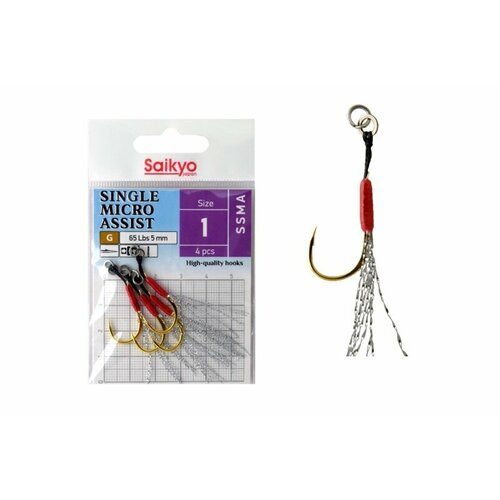 Крючки Saikyo SINGLE MICRO ASSIST SSMA №1 ( 1 упк. по 4 шт)