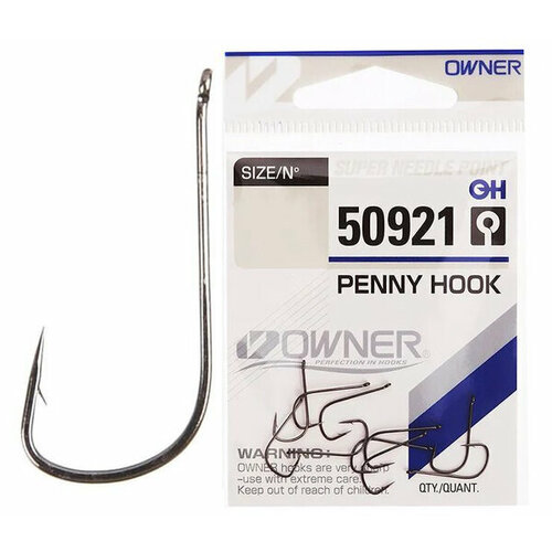 Крючок рыболовный OWNER 50921 PENNY HOOK. Серия крючков спортивной направленности, воплотившая достоинства (тонкая проволока, острейшее жало, маленькая изящная бородка) изделий для профессионалов с удобствами (колечко для привязки) снастей для любительской ловли. Рекомендована к использованию в поплавочной ловле на необъемные насадки как растительного, так и животного происхождения.