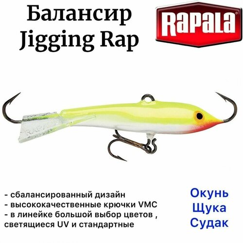 Балансиры Rapala Jigging Rap формой тела очень точно имитируют основной кормовой объект хищника - рыбьего малька, благодаря чему приманки уловисты даже в период бесклевья, что особенно важно в зимний период. Играя на подергиваниях удочкой, балансир размашисто выписывает петли и плавно возвращается в исходное положение. Эффектная игра приманки соблазнит не только рыб, находящихся непосредственно рядом с лункой, но и способна привлечь хищника с больших расстояний. Jigging Rap показывают прекрасные результаты при отвесной ловле большинства видов хищных рыб на любых водоемах нашей полосы.