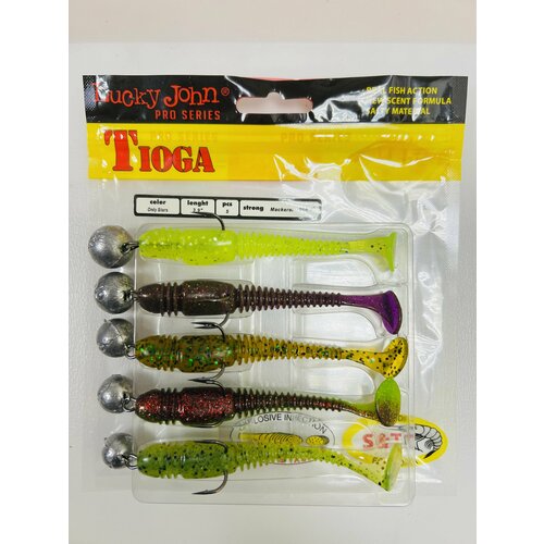 Набор из пяти различных рыболовных приманок Lucky John Tioga станет отличным подарком «под ключ» как как для начинающих, так и профессиональных рыболовов. Включает в себя пять самых уловистых расцветок мягких приманок, каждая из которых оснащена японским двойником и грузилом чебурашка разборная.