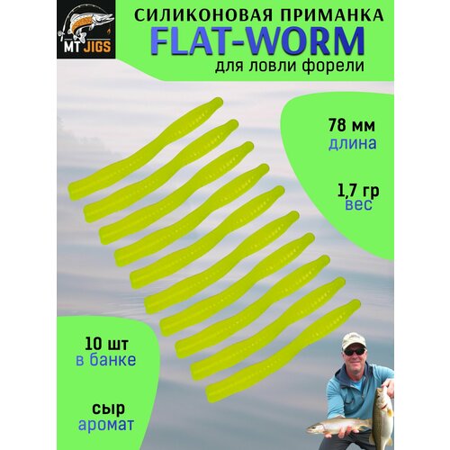 Представляем вашему вниманию силиконовую приманку на форель Flat worm от компании MT Jigs размером 78 мм, представленную в комплекте из 10 штук. Эта мягкая приманка станет отличным помощником для любителей рыбалки, обеспечивая максимальную эффективность на водоемах. Изготавливаясь из качественного силикона, она обеспечивает реалистичное движение в воде, что привлекает внимание хищной рыбы.