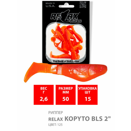Силиконовая приманка для рыбалки RELAX - риппер KOPYTO BLS 2", длина - 5,0cm, вес - 2,6g, цвет S125 (Red, Orange) (15 штук)