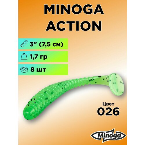 Силиконовая приманка Minoga Action 3" (8шт) 75мм, цвет 026