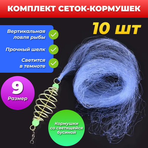 Кормушку можно забрасывать как в ручную, так и с помощью спиннинга предварительно в кормушку-пружину нужно вдавить прикормку. Кормушка с сеткой при попадании В воду создает сетный объем, в котором кормится рыба выпадающим из кормушки кормом. Летом кормушку можно оснастить поплавком и забрасывать с берега, зимой в лунку. Пружинка с сеткой при ловле со льда опускается в лунку до дна, а затем приподнимается примерно на сантиметров 50 и в таком состоянии оставляется в ожидании, когда в неё попадётся рыба. Такая сетка с кормушкой предназначена и для ловли хищника, так как он охотится за рыбой, которая кормится возле кормушки.Бусина фосфорная светящаяся, Характеристики сетки: Ширина ячейки - 4,5х4,5 см Максимальный вес рыбы 1-2 кг