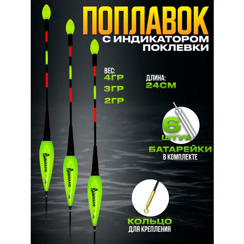Умный поплавок для рыбалки светящийся с индикатором поклевки 2, 3, 4гр 3шт #1