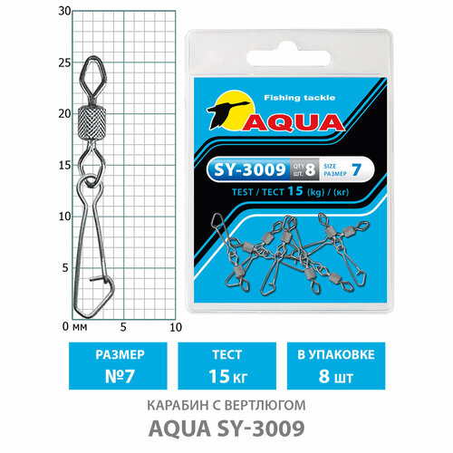 Карабин с вертлюгом для рыбалки AQUA SY-3009 №07 15kg (8шт)