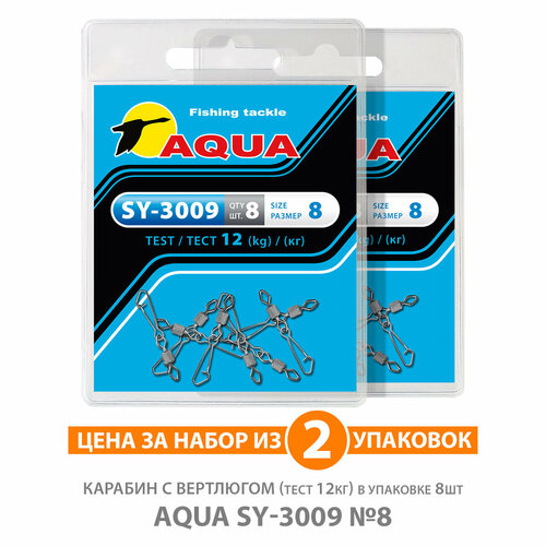 Карабин с вертлюгом для рыбалки AQUA SY-3009 №08 12kg 2уп по 8шт