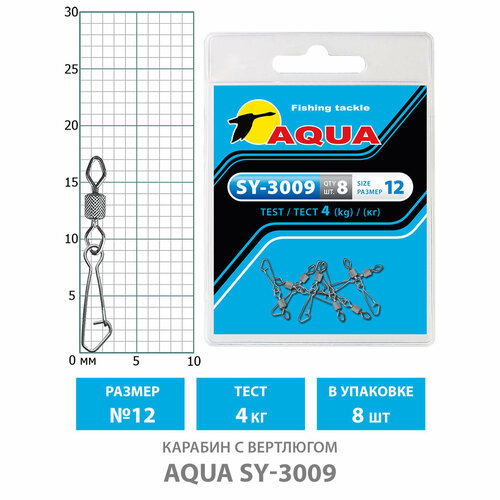 Карабин с вертлюгом для рыбалки AQUA SY-3009 №12 4kg (8шт)