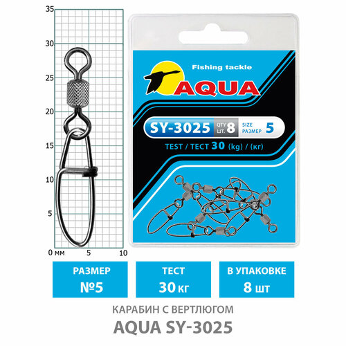 Карабин с вертлюгом для рыбалки AQUA SY-3025 №05 30kg (8шт)