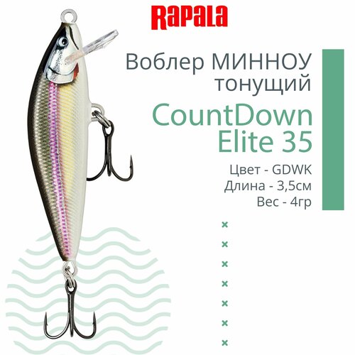 Воблер для рыбалки RAPALA CountDown Elite 35, 3,5см, 4г, цвет GDWK, тонущий