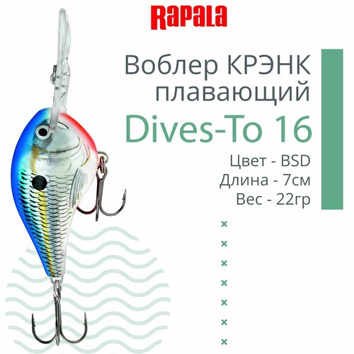 Воблер для рыбалки RAPALA Dives-To 16, 7см, 22гр, цвет BSD , плавающий