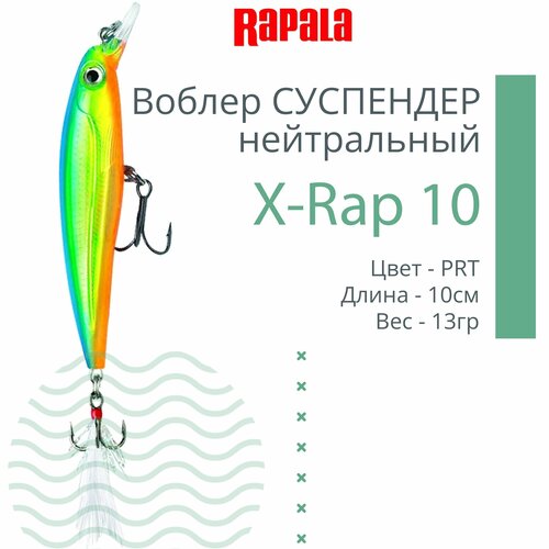 Воблер для рыбалки RAPALA X-Rap 10, 10см, 13гр, цвет PRT, нейтральный
