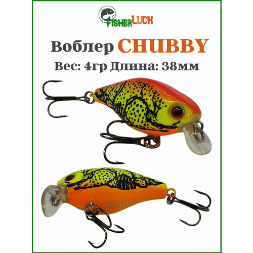Воблер Сhubby 38мм 4гр обладает хорошими полетными характеристиками. Данная модель воблера с минимальным заглублением, для ловли в стоячей воде и устойчивой игрой на любом течении.