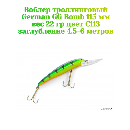Воблер для троллинга German GG Bomb 115 мм / 22 гр / цвет C113 / заглубление 4.5-6 метров