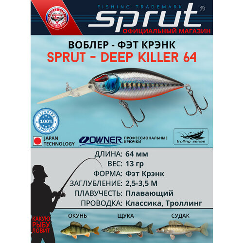 Воблер Sprut Deep Killer 64F (Floating/64mm/13g/2,5-3,5m/SBK3)