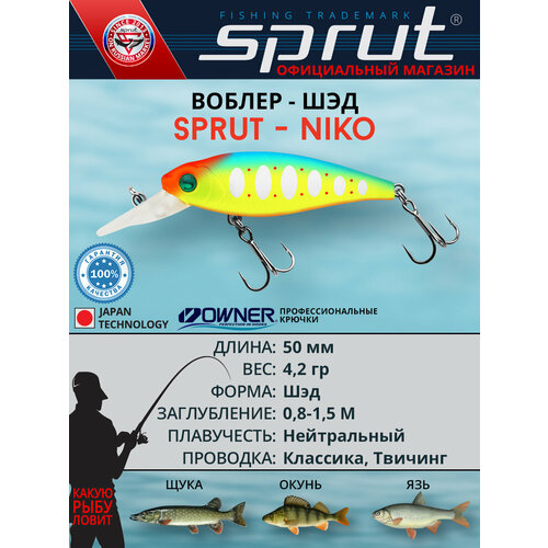 Воблер Sprut Niko 50SP (Suspending/50mm/4,2g/0,8-1,5m/LBTR2)