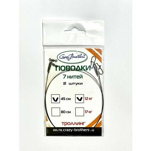 Поводки рыболовные Crazy Brothers, 7 нитей, нержавеющая сталь, разрывная нагрузка 12 кг, длина 45см