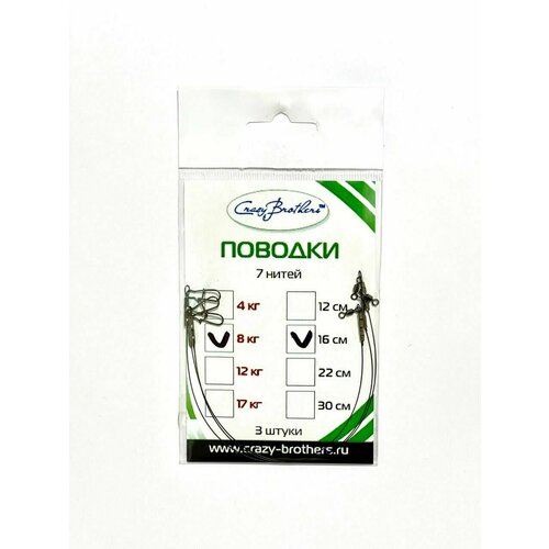 Поводки рыболовные Crazy Brothers, 7 нитей, нержавеющая сталь, разрывная нагрузка 8 кг, длина 16см