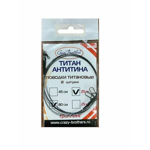 Поводки рыболовные Crazy Brothers, титановые, разрывная нагрузка 20 кг, длина 80см