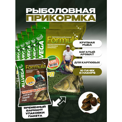 Прикормка ALLVEGA "Formula Carp Hemp" (карп конопля) набор 10 штук по 0.9 кг
