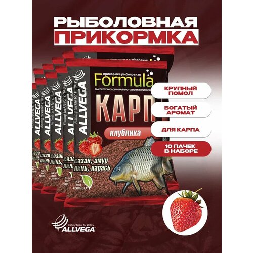 Прикормка ALLVEGA "Formula Carp Strawberry" (карп клубника) набор 10 штук по 0.9 кг
